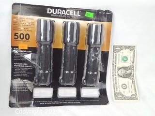 Lot #0229: 3pk Duracell Durabeam LED 500L Flash Lights
