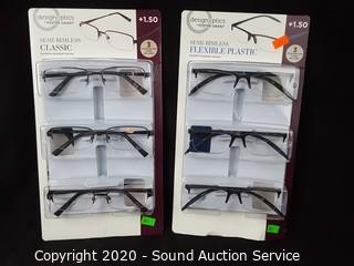 Lot #0347: 6 Design Optics +1.5 Reading Glasses