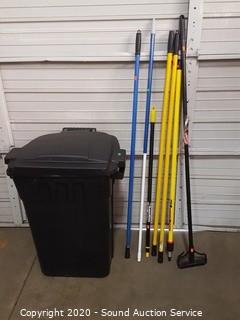Lot #0116: Blue Hawk 32Gal Trash Can & Various Handles