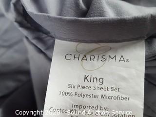 Item Description: 100% polyester microfiber. Blue/Gray.