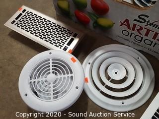 Item Description: 4" x 12", 4" x 10", 2" x 12", 2" x 10", white, bronze finish, 8" and 10" diameter, 4" dryer draft blockers.