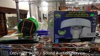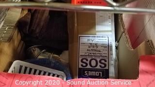 Item Description: Cart NOT included. Air mattress, motion sensor security light, string lights, bluetooth headphones, collapsible lanterns, garden hose, water flossers, steam iron,