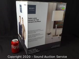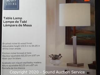 Lot #0320: Scott Living Nickel &Wood Finish Table Lamp