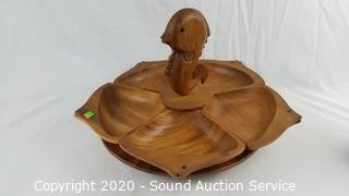 Lot #0368: Wood Chip & Dip Lazy Susan & Oil Lamp