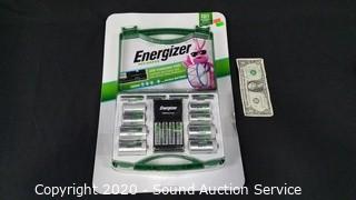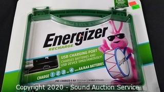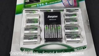 Item Description: Includes 2 AAA, 6 AA, 4 C batteries, 4 D adapters and charging station. Works.