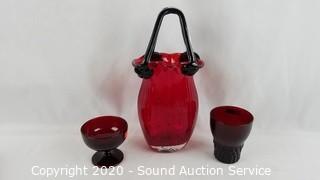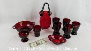 Lot #0273: 10pc Ruby Glassware & Art Glass Handled Basket