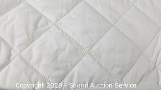 Item Description: Mattress pad has 2 small yellow spots, not pee, otherwise like new. Protects against bedbugs and allergies.