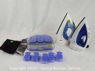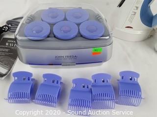 Lot #0362:     Pair of Steam Irons & John Frieda Curlers