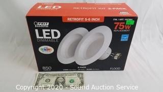 Lot #0298: 2pk Feit LED Dimmable 5-6" Retrofit Lights