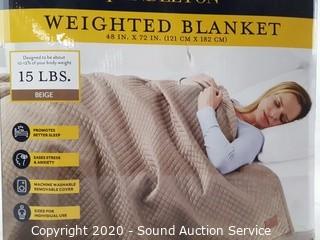 Lot #0046: Like New Pendleton Beige 15lb Weighted Blanket