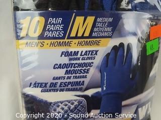 Lot #0048: New 10pk Well Lamont Foam Latex Work Gloves S:M