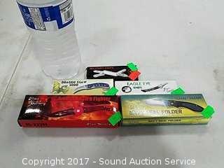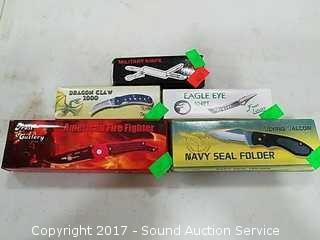 Includes: Dragonclaw 2000, American Firefighter, Eagle Eye Knife, Navy Seal Folder & Military Miniature Survival knife.