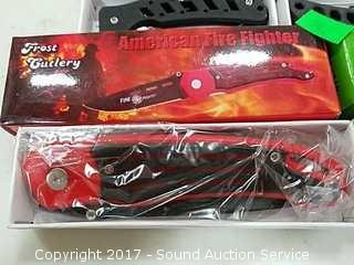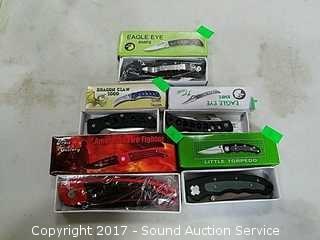 Includes: 2 Eagle Eye knives, Little Torpedo knife, American Firefighter, and Dragonclaw 2000.