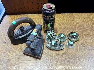 Lot #0158: Antique Flower Frogs & Sad Irons