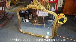 Lot #0213: Antique Ornate Gold Gilded Mirror 32" x 32"