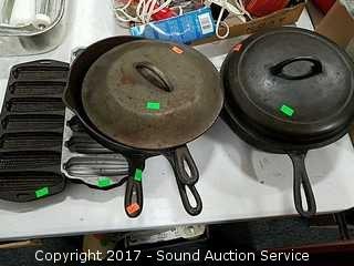 Lot #0192: Cast Iron Skillets, Dutch Oven & Molds