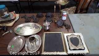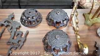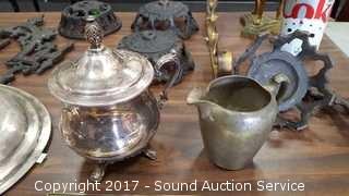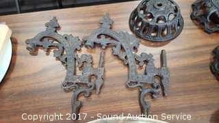 Lot #0089: Cast Iron Wall Sconces, Silverplate Items & More