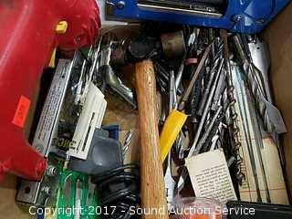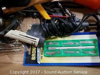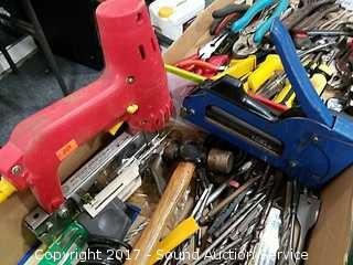 Includes: Bits, staplers, carving knife set, various drill bits, soldering gun, hammer, power stapler and staples, and more.