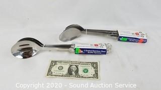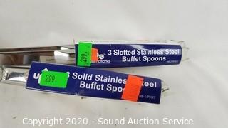 Lot #0299: 3 Solid & 3 Slotted New Stainless Buffet Spoons