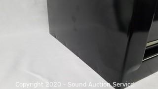 Item Description: A little bent in places, drawers have trouble staying in and on sliders, otherwise like new condition. Does not come with key. Has owners manual. 18" x 26" x 12".
