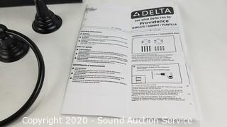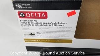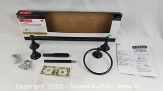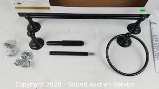 Item Description: Missing a post for the towel bar or toilet paper holder. Includes towel bar, towel ring and toilet paper holder.