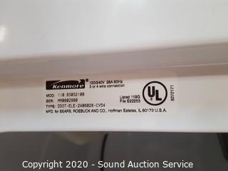 Item Description: Model 110.63032100. Serial MM0802980. 43" x 27" x 27". Still has protective plastic coating on the control panel.