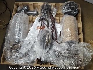 Item Description: Olde Bronze Finish with clear glass shades. Missing one shade. Works. 18.4" x 18.4" x 20.4"