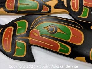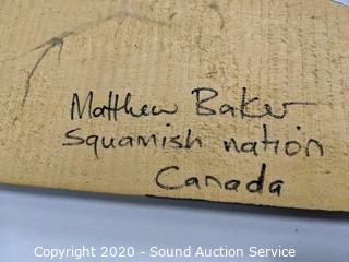 Item Description: Signed by Artist Matthew Baker. 12" H x 62" W. Similar sell for $6000 on the Lattimer Gallery. Matthew Baker is part of the Squamish/Kwakwaka'wakw, born May 19, 1966,