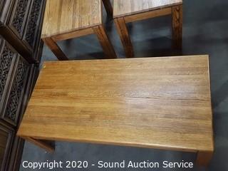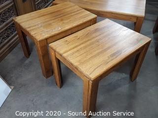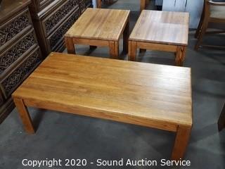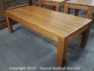 Lot #0024: Nice 3pc Solid Oak Living Room Table Set