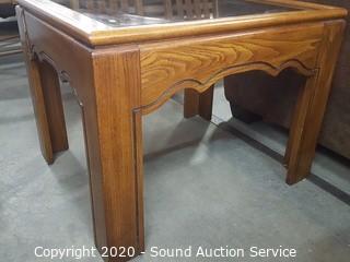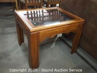 Lot #0013: Tinted Glass Top Side Table w/Gold Accent