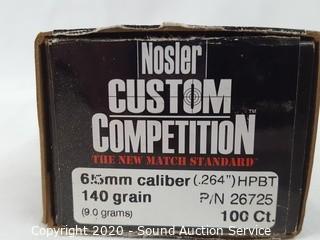 Lot #0141: 100ct Nosler 6.5mm HPBT 140gr Bullets