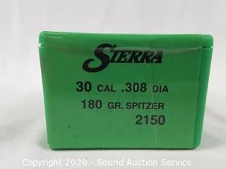 Lot #0140: 100ct Sierra 30Cal .308dia 100gr Spitzer Bullets