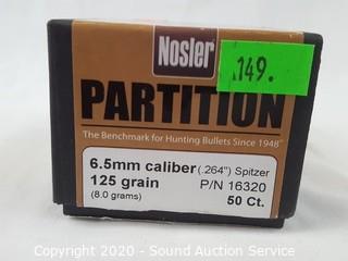Lot #0149: 41Nosler 50Cal 6.5mm .264dia 125gr Spitzer Bullets