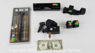 Item Description: Includes Burris P.E.P.R scope mount, ADA and ACH scope mounts, Manfrotto ART.035 Super Clamp, Wheeler Engineering Delta Series AR-10 Front AR-15 Front clamp block and BCM