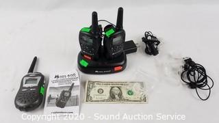 Item Description: Includes 2 Midland Xtra Talk and 1 Cobra Micro Talk walkie talkie. All work with batteries, Midlands come with charger, (could not get it to charge, may need rechargeable