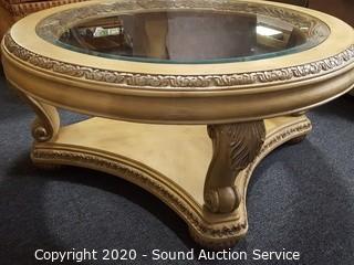 Lot #0006: Modern Baroque Style Glass Top Round Coffee Table