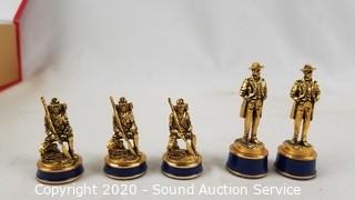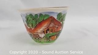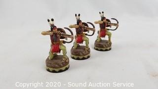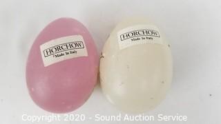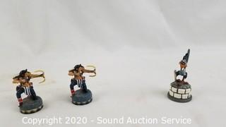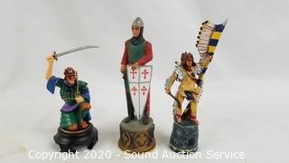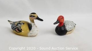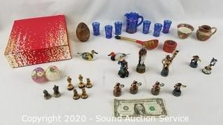 Item Description: Includes Rural England bowl and pitcher, Franklin Mint knight and Native figures, blue carnival glass pitcher and glasses, wooden spoon and egg, Enesco duck figures, Horchow
