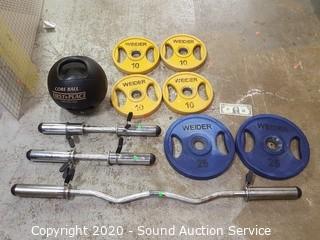 Lot #0045: Weider Weights w/Curl Bars & 8lbs Ball