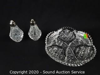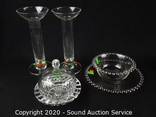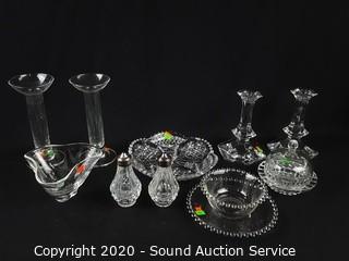 Lot #0070: 10pc Tyrone S&P, Other Crystal Ware & Candlewick