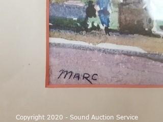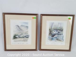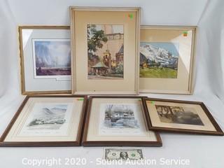 Description Cont. 1: Elterwater" 500/500, 13" x 15". Signed "Victor Valery" color print, 13" x 12", "Albert Bierstadt" Looking Up at Yosemite Valley print, 15" x 19" and 2 water colors by artist "Marc", 15" x 19". All are framed