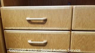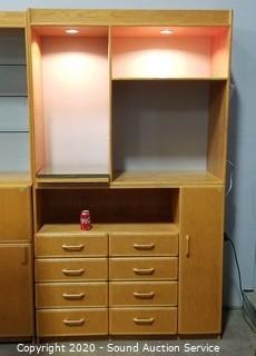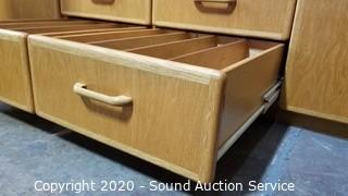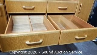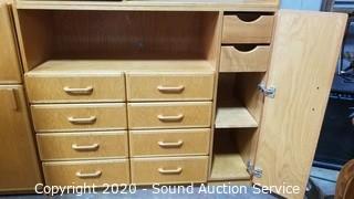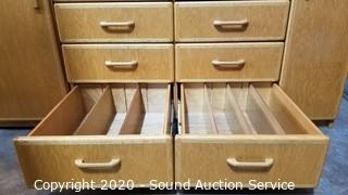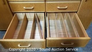 Lot #0008: Oak 2pc 10-Drawer Lighted Utility Cabinet