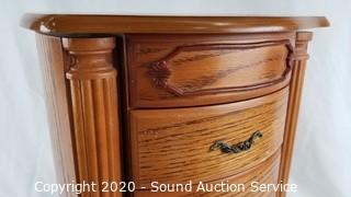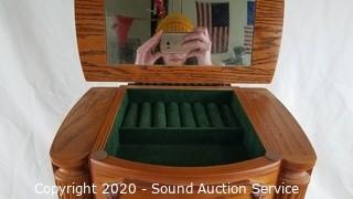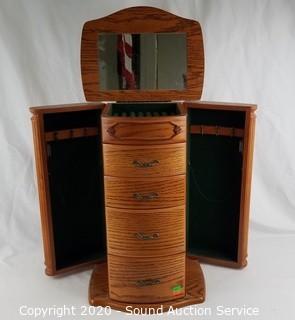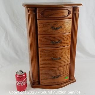 Lot #0171: 4 Drawer Oak Finish Jewelry Chest