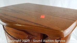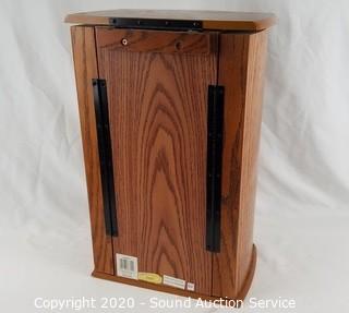 Item Description: Side necklace racks, felt lined, mirrored top, oak finish. 20" x 11.5" x 9".