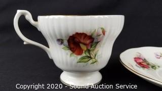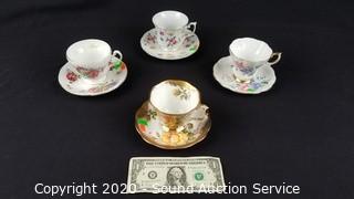 Lot #0073: 4 Floral Fine China Tea Cups & Saucers