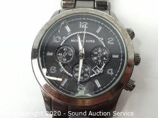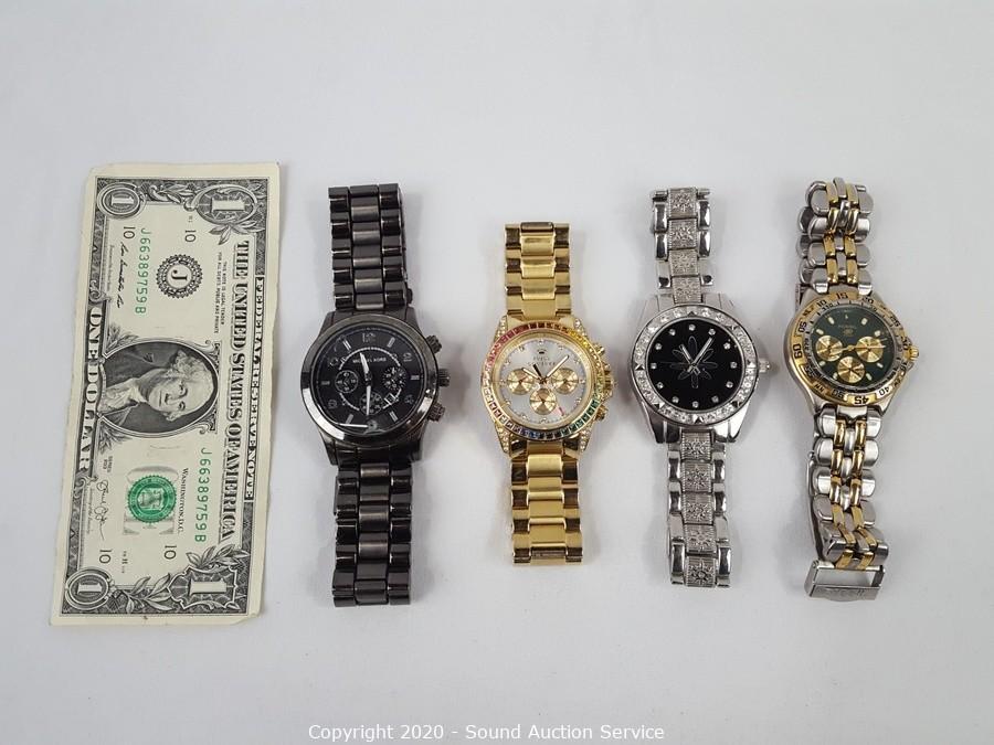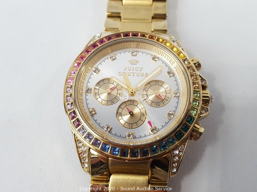 Item Description: All quartz movement, need batteries. Includes Juicy Couture gold plate colorful rhinestone chronograph watch, water resistant. Michael Kors black stainless chronograph watch,