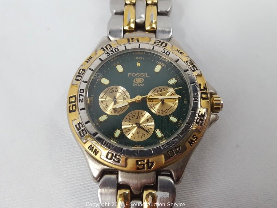 Description Cont. 1: faceplate has a chip, otherwise water resistant. Fossil Blue chronograph stainless watch, water resistant BQ-8776. And other stainless watch.