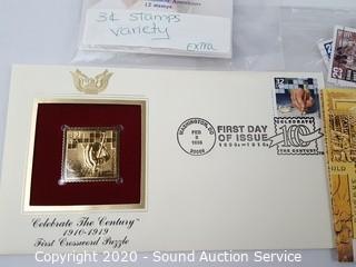 Item Description: Comes with a FDI 1998 gold Celebrate the Century stamp with original paperwork and 1954 stamp finder guide and stamp collecting literature.