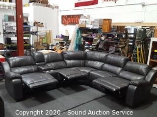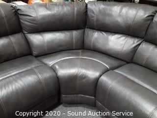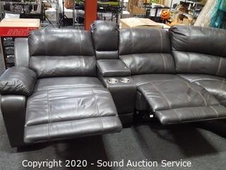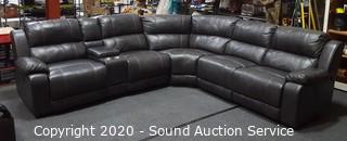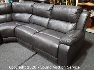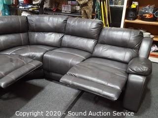 Lot #0001: Dunhill Grey Leather Power Recline Sectional