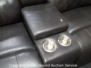 Item Description: Looks to be brand new, works. Center console has USB ports & outlet. 3 sections power recline. Each control console has a USB outlet. 36" H x 112" x 120" x 20" to seat.