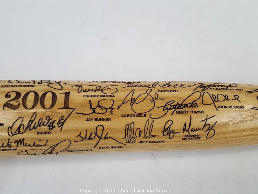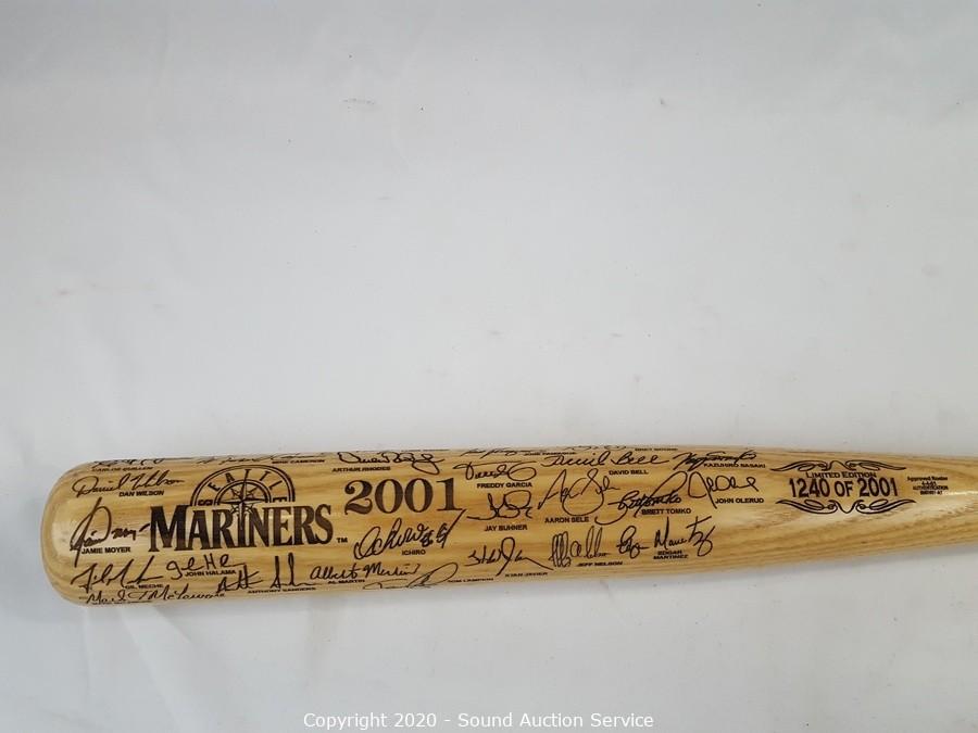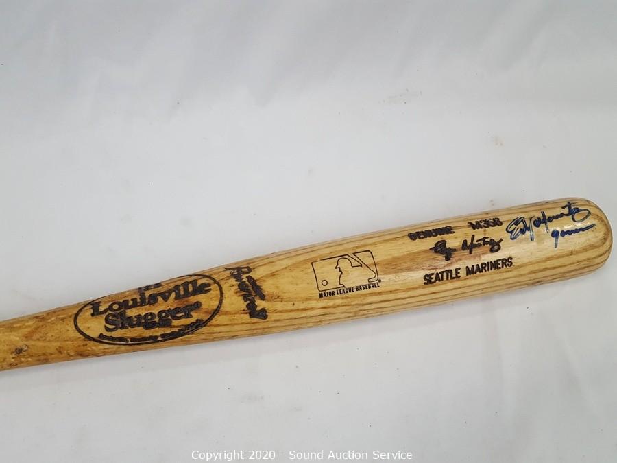 Item Description: Broken bat is a Louisville Slugger autographed by Seattle Mariner's Edgar Martinez. Other is limited 1240/2001 Seattle Mariner's 2001 bat. Facsimile autographed.
